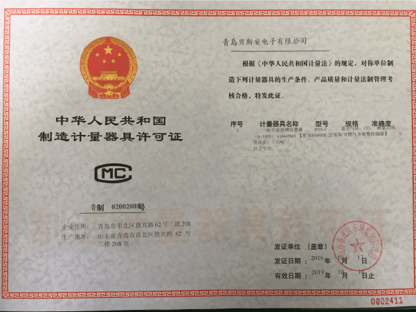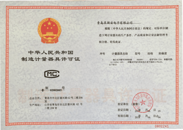 我公司是青島市具有國家質量技術監(jiān)督部門頒發(fā)的計量器具生產(chǎn)許可證的生產(chǎn)企業(yè);獲得國家防爆電氣產(chǎn)品質量監(jiān)督檢驗中心頒發(fā)的防爆合格證;獲得國家公安部消防產(chǎn)品合格評定中心頒發(fā)的消防產(chǎn)品形式認可證書。